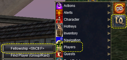 表示されない場合は、EQマーク → Players → Fellowship で開けます。