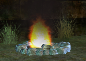 この焚き火は、ログアウト後?数時間で消えるので、翌日、移動前に再作成することをお忘れなく。